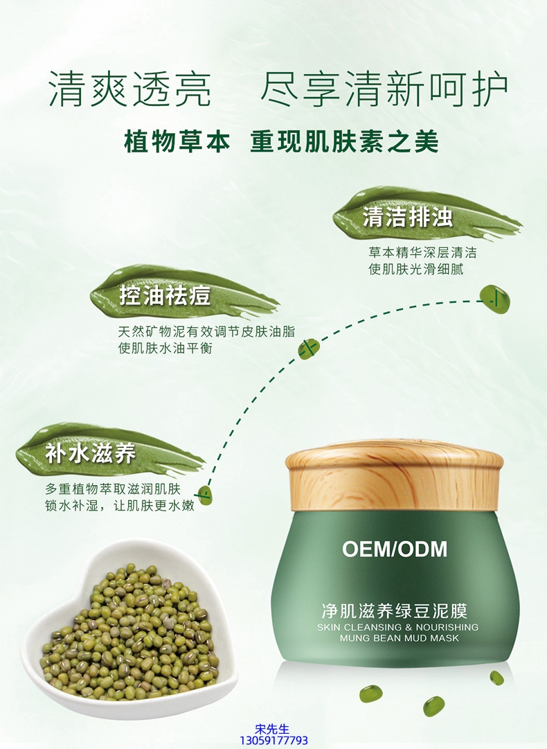 涵美_泥膜深层清洁补水保湿绿豆泥膜 泥膜oem/OEM加工贴牌